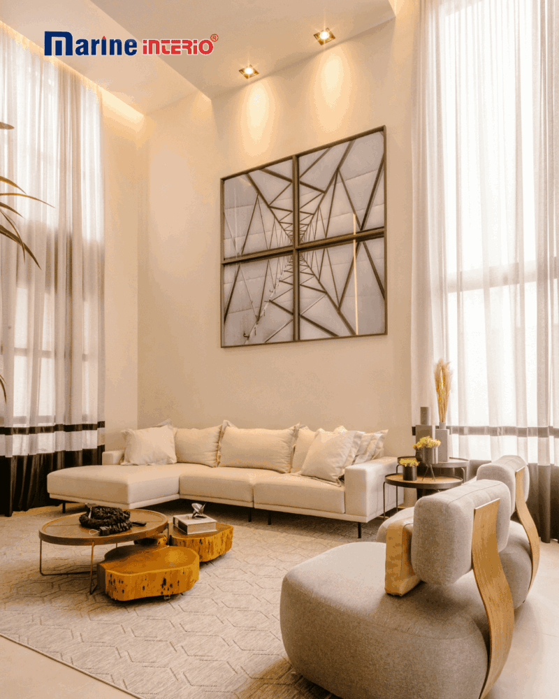 Marine Interio provides complete interior design solutions, including residential interiors, commercial interiors, and turnkey interior execution. We handle everything from design planning and material selection to on-site execution and final handover.